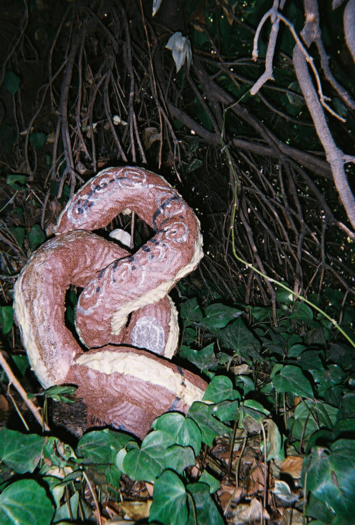 Corpse Flora, 2019, Ceramic, glaze, melted copper, paint, sharpie, 27 x 48 x 21 inches